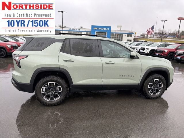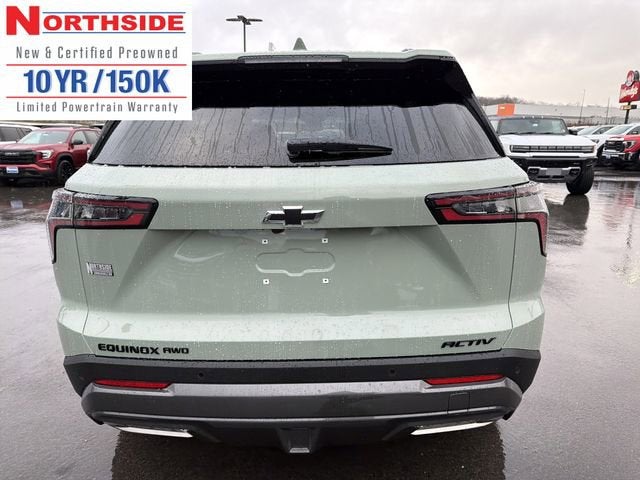 Northside Chevrolet Buick GMC is proud to offer this great 2026 Chevrolet Equinox ACTIV in Green, beautifully equipped with Floor Liner Package (All-Weather Floor Liners, Cargo Mat, and Second Row All-Weather Mat), Preferred Equipment Group KDZ, AWD, 2-Way Power Driver Lumbar Control Seat Adjuster, 3 Years SiriusXM, 3.47 Final Drive Axle Ratio, 4-Wheel Disc Brakes, 6 Speakers, ABS brakes, Air Conditioning, Alloy wheels, AM/FM radio: SiriusXM, Auto High-beam Headlights, Automatic temperature control, Brake assist, Bumpers: body-color, Compass, Delay-off headlights, Driver 8-Way Power Seat Adjuster, Driver door bin, Driver vanity mirror, Dual front impact airbags, Dual front side impact airbags, Electronic Stability Control, Emergency communication system: OnStar and Chevrolet connected services capable, Four wheel independent suspension, Front anti-roll bar, Front Bucket Seats, Front Center Armrest, Front dual zone A/C, Front Passenger 4-Way Manual Seat Adjuster, Front reading lights, Fully automatic headlights, Garage door transmitter, Heated door mirrors, Heated Driver and Front Passenger Seats, Heated front seats, Heated steering wheel, Illuminated entry, Low tire pressure warning, Navigation System, Occupant sensing airbag, Outside temperature display, Overhead airbag, Overhead console, Panic alarm, Passenger door bin, Passenger vanity mirror, Power door mirrors, Power driver seat, Power Liftgate, Power steering, Power windows, Premium audio system: Chevrolet Infotainment 3 Plus, Radio data system, Radio: 11.3 Diagonal Advanced Color LCD Display, Rain sensing wipers, Rear anti-roll bar, Rear reading lights, Rear seat center armrest, Rear window defroster, Rear window wiper, Remote keyless entry, Security system, SiriusXM with 360L Trial Subscription, Speed control, Speed-sensing steering, Split folding rear seat, Spoiler, Steering wheel mounted audio controls, Sueded Microfiber Seat Trim, Tachometer, Telescoping steering wheel, Tilt steering wheel, Traction control, Trip computer, Variably intermittent wipers, and Wheels: 17 Dark Android Painted Machined-Face! AWD.