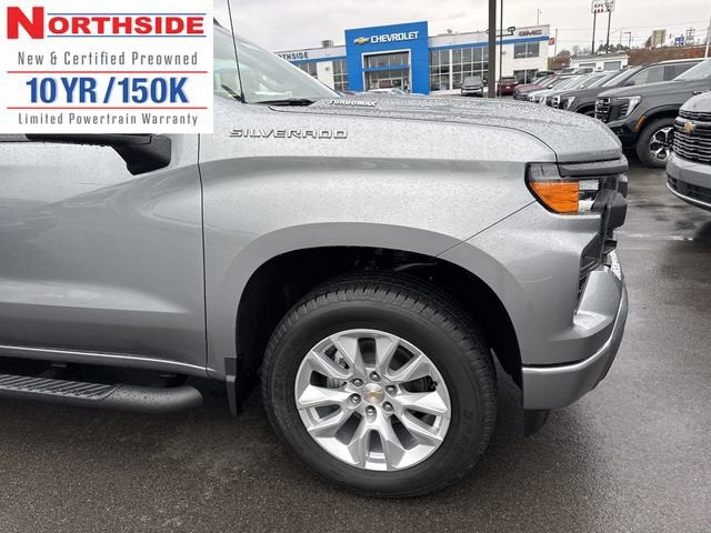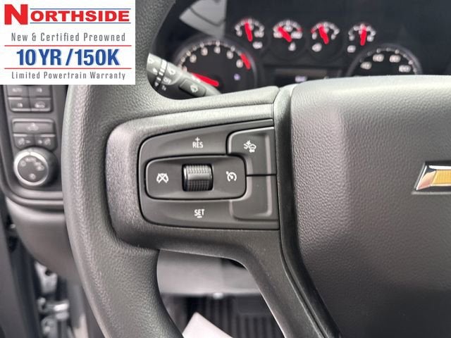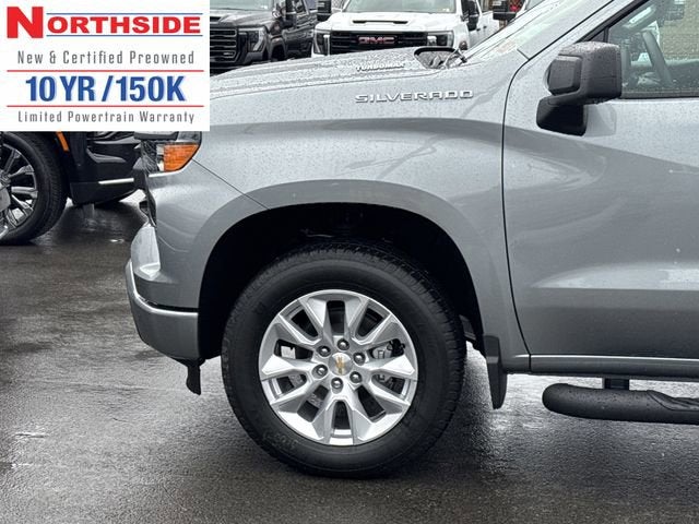 Northside Chevrolet Buick GMC is pleased to offer this rock solid 2026 Chevrolet Silverado 1500 Custom in Sterling Gray Metallic, beautifully equipped with Custom Convenience Package (Electric Rear-Window Defogger, EZ Lift Power Lock and Release Tailgate, LED Cargo Area Lighting, Remote Vehicle Starter System, and Theft Deterrent System (unauthorized Entry)), Custom Value Package, High Capacity Suspension Package, Preferred Equipment Group 1CX (10-Way Power Driver Seat with Lumbar, 120-Volt Bed Mounted Power Outlet, 120-Volt Interior Power Outlet, 3.5 Monochromatic Display Driver Info Center, 40/20/40 Front Split-Bench Seat, Bluetooth® For Phone, Cloth Seat Trim, Color-Keyed Carpeting Floor Covering, Deep-Tinted Glass, Dual Rear USB Ports (charge Only), Electronic Cruise Control, Front Frame-Mounted Black Recovery Hooks, Front Rubberized Vinyl Floor Mats, HD Rear Vision Camera, Manual Tilt Wheel Steering Column, OnStar Services Capable, Power Front Windows with Driver Express Up/Down, Power Front Windows with Passenger Express Down, Power Rear Windows with Express Down, Rear 60/40 Folding Bench Seat (folds Up), Rear Rubberized-Vinyl Floor Mats, Remote Keyless Entry, SiriusXM Trial Subscription, Standard Tailgate, Teen Driver, Tire Pressure Monitoring System, and Wi-Fi Hot Spot Capable), Trailering Package (Hitch Guidance), 8-Speed Automatic, 4WD, Black Cloth, 3 Years SiriusXM, 3.42 Rear Axle Ratio, 4-Wheel Disc Brakes, 4 Black Round Assist Steps, 6 Speakers, 6-Speaker Audio System, ABS brakes, Air Conditioning, Alloy wheels, AM/FM radio: SiriusXM, Apple CarPlay/Android Auto, Auto High-beam Headlights, Automatic Emergency Braking, Brake assist, Bumpers: body-color, Chevytec Spray-on Black Bedliner, Compass, Delay-off headlights, Driver door bin, Driver vanity mirror, Dual front impact airbags, Dual front side impact airbags, Electronic Stability Control, Emergency communication system: OnStar, Following Distance Indicator, Forward Collision Alert, Front anti-roll bar, Front Center Armrest w/Storage, Front License Plate Kit, Front Pedestrian Braking, Front reading lights, Front wheel independent suspension, Fully automatic headlights, Heated door mirrors, Illuminated entry, IntelliBeam Automatic High Beam on/Off, Lane Keep Assist with Lane Departure Warning, Low tire pressure warning, Occupant sensing airbag, Outside temperature display, Overhead airbag, Overhead console, Panic alarm, Passenger door bin, Passenger vanity mirror, Power door mirrors, Power driver seat, Power steering, Power windows, Premium audio system: Chevrolet Infotainment 3, Radio data system, Radio: Chevrolet Infotainment 3 System, Rear reading lights, Rear step bumper, Rear window defroster, Remote keyless entry, Security system, Speed control, Speed-sensing steering, Split folding rear seat, Tachometer, Tilt steering wheel, Traction control, Trip computer, Variably intermittent wipers, Voltmeter, and Wheels: 20 x 9 Bright Silver Painted Aluminum! 8-Speed Automatic, 4WD, Black Cloth.