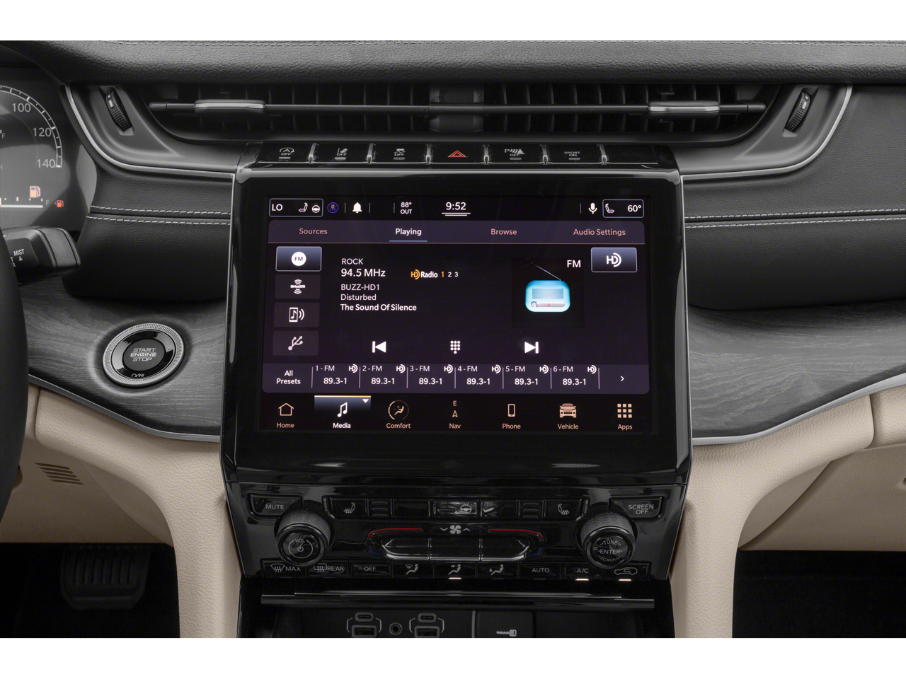 Step inside the spacious, meticulously crafted cabin and surround yourself with premium materials and thoughtful amenities. The Nappa leather-trimmed seats, heated steering wheel, and dual-zone climate control create an oasis of comfort. The advanced Uconnect 5 infotainment system with a 10.1-inch display keeps you connected and entertained, while the 10-speaker audio system delivers a concert-hall experience.