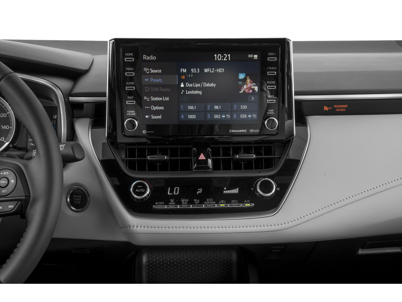 - Radio: Audio -inc: 8" touchscreen, 6 speakers, Android Auto, Apple CarPlay, Amazon Alexa compatible, USB media port, 2 USB charge ports, hands-free phone capability, music streaming via Bluetooth wireless technology and SiriusXM w/3-month All Access trial, See toyota.com/audio-multimedia for details, Connected Services - Safety Connect w/1-year trial and Wi-Fi Connect w/up to 2 GB within 3-month trial, See toyota.com/connected-services for details